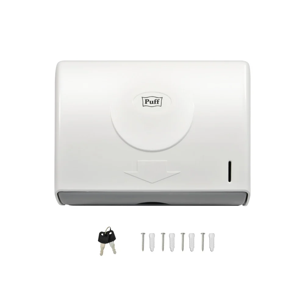 Диспенсер для бумажных полотенец Puff-5110 создан в простом корпусе, удобном в использовании. Держатель бумажных полотенец широко используются в отелях, ванной комнате, кухне, аэропорту и в общественных туалетах. Он гигиеничный, прочный, удобный! Puff-5110 создан для туалетных комнат с большой проходимостью и рассчитан на бумажные полотенца Z сложения. Благодаря своей конструкции диспенсер относится к классу антивандальных. Держатель для бумажных полотенец запирается на верхний ключ. Держатель снабжен смотровым окошком для контроля наличия бумаги.