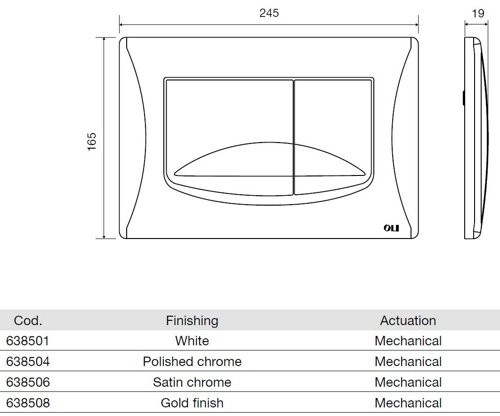 Кнопка для инсталляции OLI River для бачков скрытого монтажа функциональна, практична, позволяющая проводить неограниченное число комбинаций и возможностей.