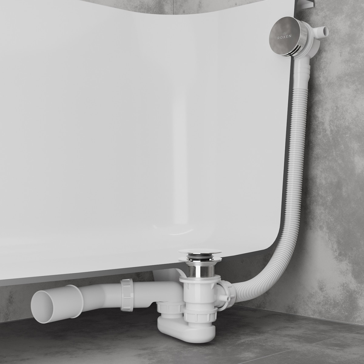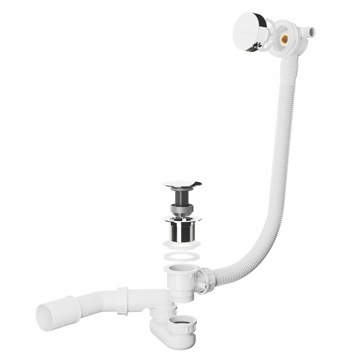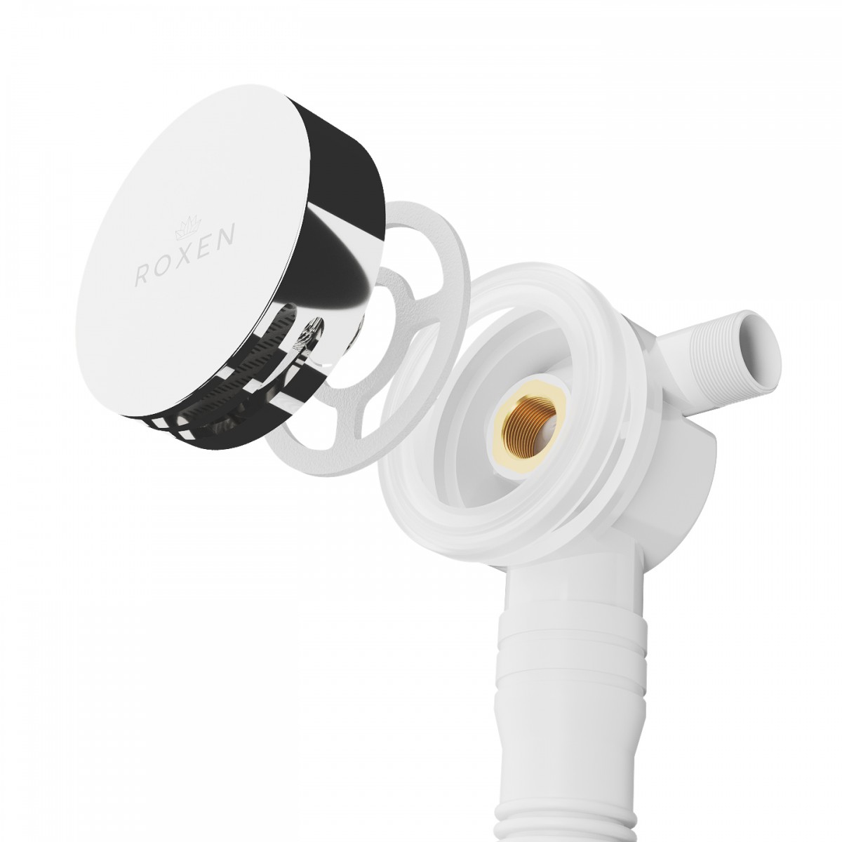 Сифон для ванны Roxen R70S-CH с функцией наполнения воды – модель с системой Click Clack и функцией наполнения воды в ванну, которая обеспечивает максимальное удобство и надежность. Этот сифон не только соединяет ванну с канализацией для отвода воды, но служит каналом для подачи воды, которая поступает из встроенного смесителя и течет по переливу прямо в ванну. Использование такого сифона позволяет скрыть смеситель от глаз и обеспечивает равномерное, бесшумное наполнение ванны, что создает более комфортную атмосферу и эстетичный внешний вид. Цвет крышки слива и перелива - хром глянцевый. Эта модель сочетает в себе инновационные технологии и высококачественные материалы, обеспечивая долговечность и стабильную работу. Защита от протечек и антибактериальные компоненты помогут поддерживать чистоту и гигиеничность в ванной комнате. Сифон подходит для любых типов ванн.