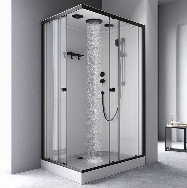 Душевая кабина AM.PM X-Joy 120x90 (черный матовый/прозрачное стекло). Дополнительные элементы (в комплекте)полка, держатель ручной лейки, крепежи