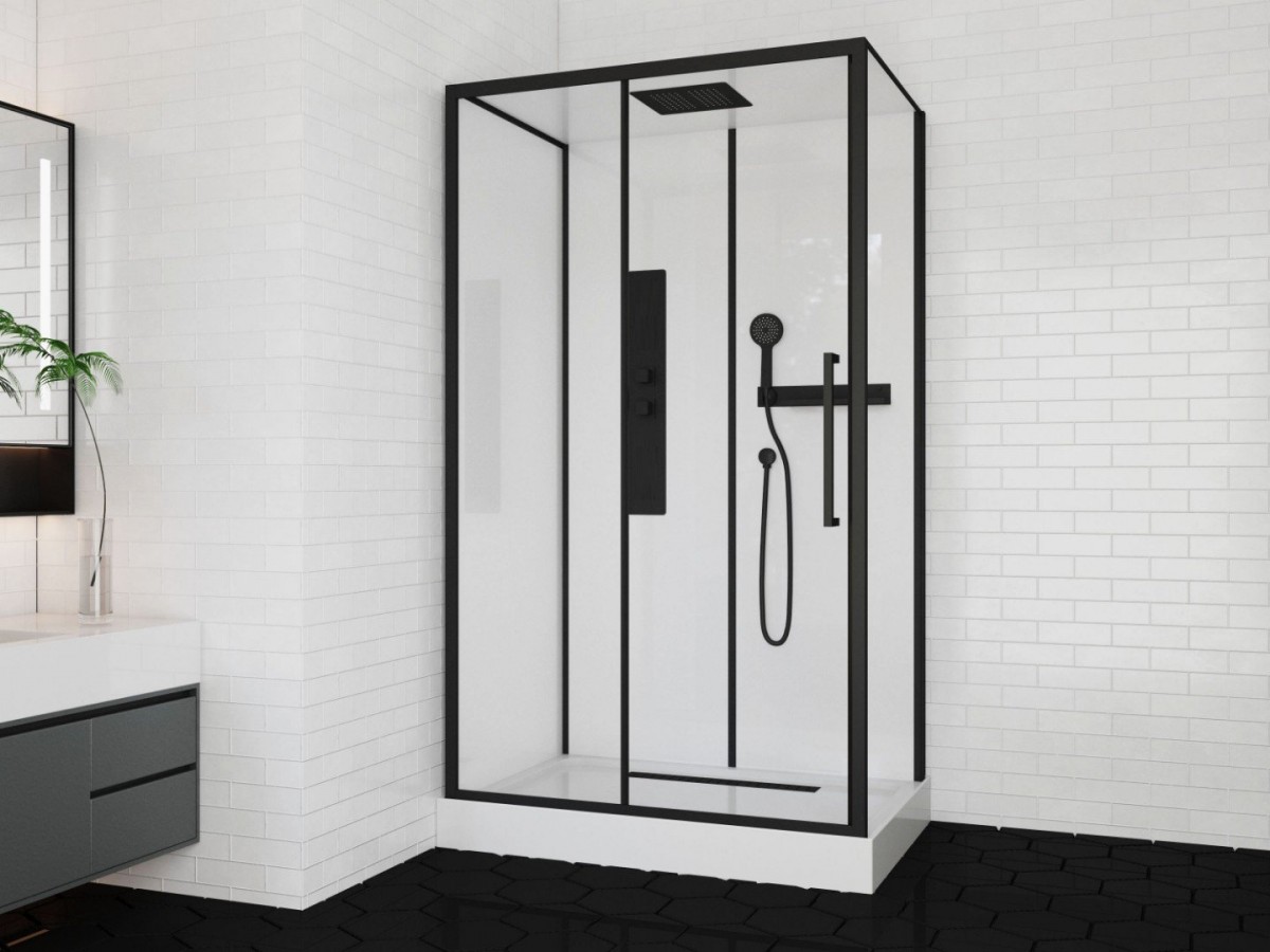 Душевая кабина Cerutti Spa AMI120 120x80 стекла прозрачные, профиль черный, общий размер (ДхШ): 120х80, низкий поддон, форма: прямоугольная, полка в комплекте