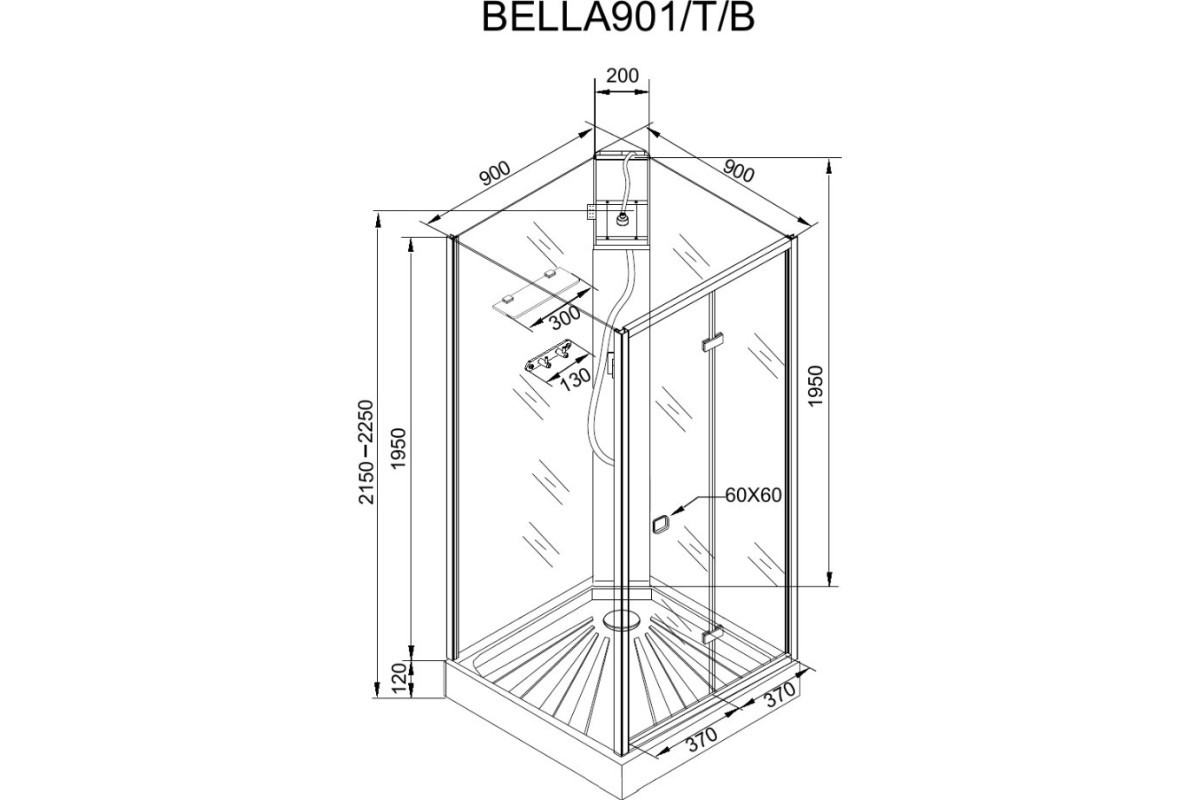 Душевая кабина Cerutti Spa BELLA90T 90x90 без крыши, стекла прозрачные, профиль хром, общий размер (ДхШ): 90x90, низкий поддон, форма: прямоугольная, полка в комплекте, вентиляция