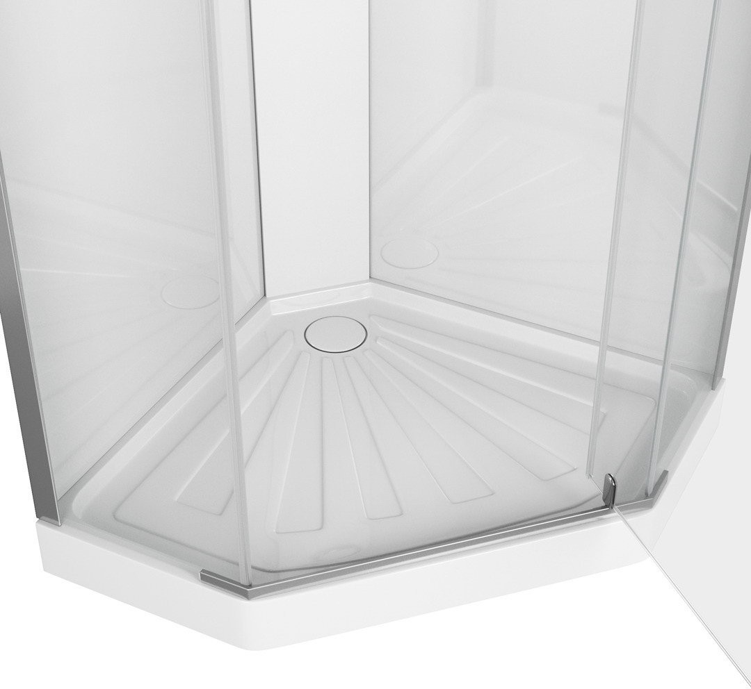 Душевая кабина CeruttiSpa CHIKA 901T 90x90 без крыши, стекла прозрачные, профиль хром, общий размер (ДхШ): 90x90, низкий поддон, форма: пятиугольная, полка в комплекте