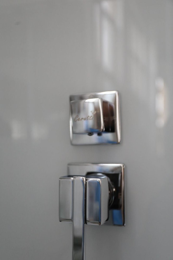 Душевая кабина Cerutti Viva 101 с крышей, с раздвижными дверями — имеет элегантный внешний вид и современное оснащение. Задние стенки выполнены из закаленного прозрачного стекла с белой покраской, передние стенки и двери прозрачные. Двойные ролики и ручки из оцинкованного сплава не подвержены коррозии. Кабина оснащена современным душевым оборудованием: верхним тропическим душем, смесителем и душевым гарнитуром, а также зеркалом, стеклянной полочкой и двойным крючком для размещения принадлежностей. Высота поддона 15 см. Кабина оснащена сифоном анти-запах. Монтажный набор для подключения приобретается дополнительно.