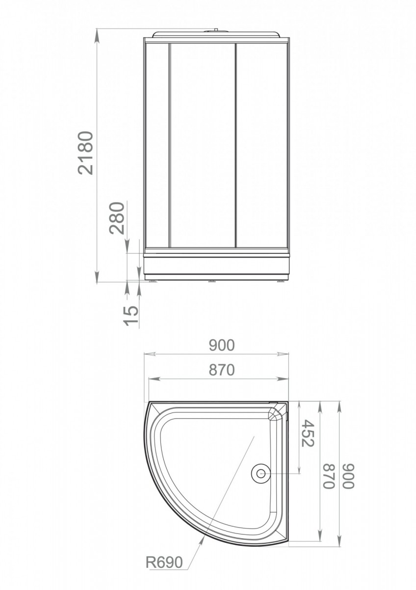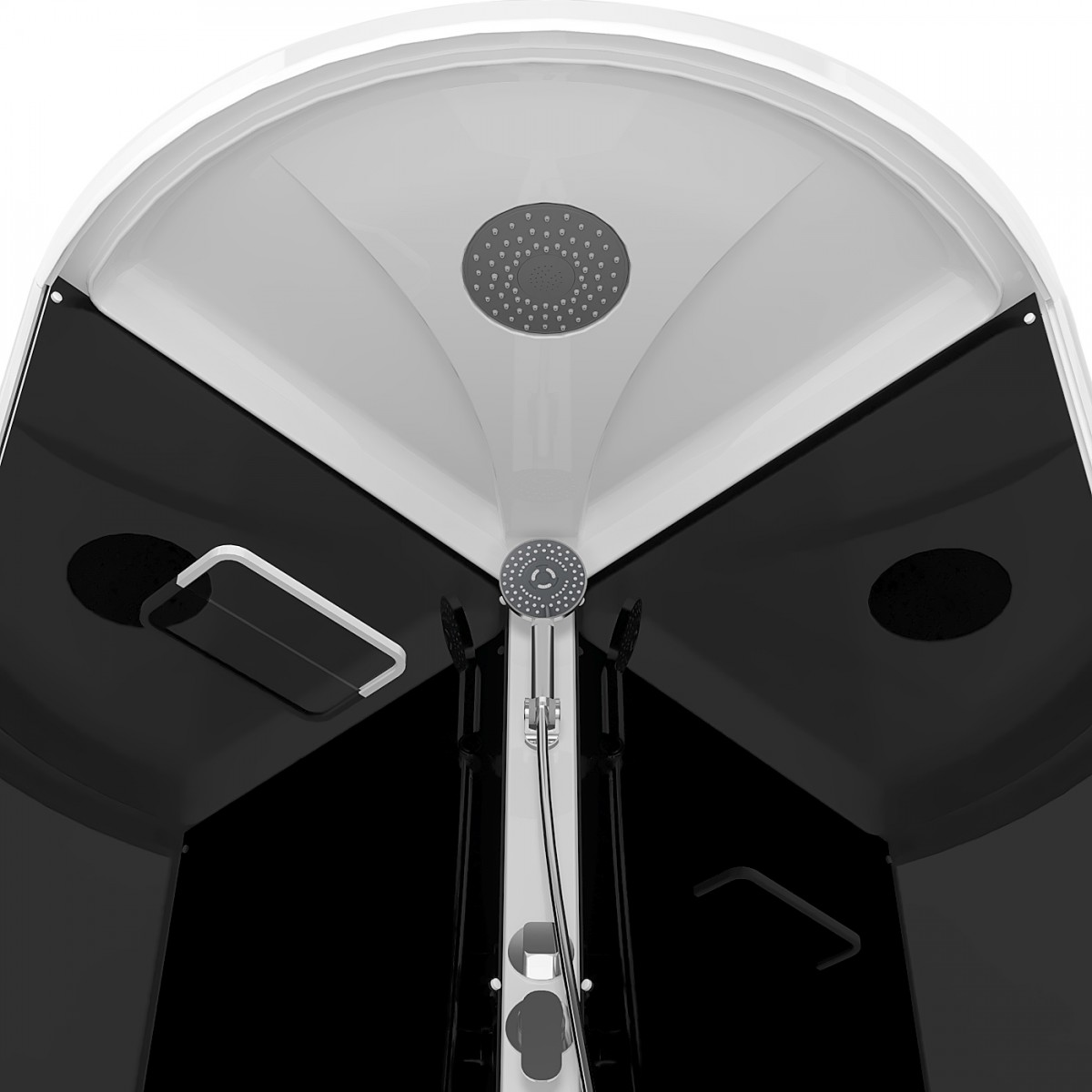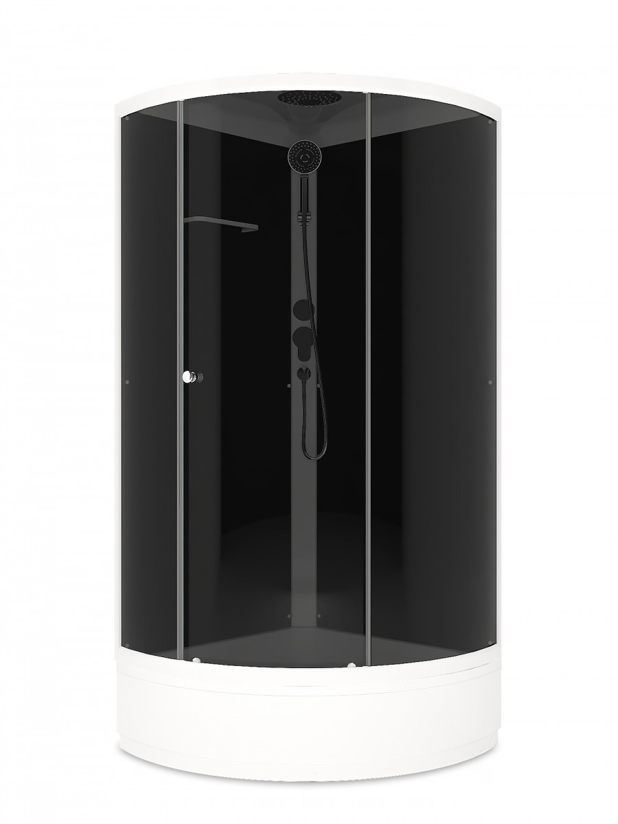 Душевая кабина Domani-Spa Simple 99 mid 90х90x218 см черные стенки / тонированные стекла с крышей, средний поддон 28 см. В комплекте: верхний душ, ручной душ, смеситель, полочка.