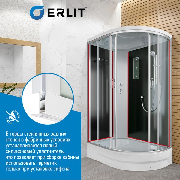 Душевая кабина Erlit ER351226L-C2-RUS 120х80. Дополнительные элементы (в комплекте)зеркало, полка