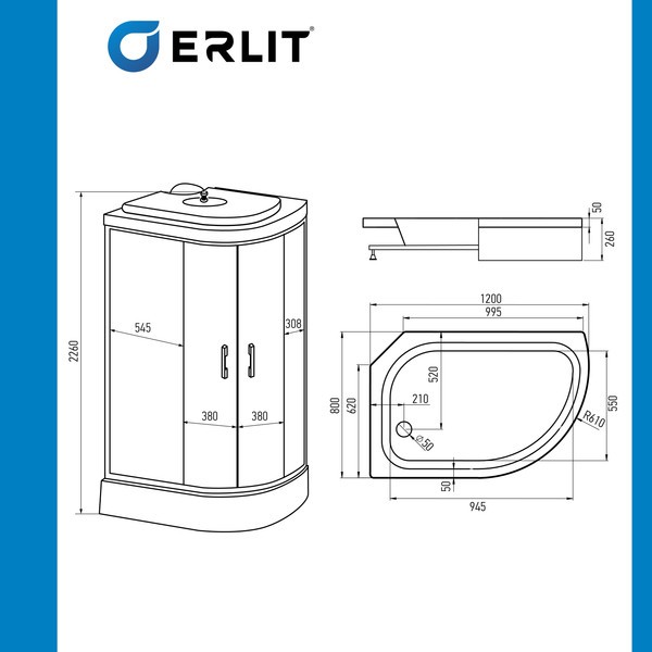 Душевая кабина Erlit ER351226L-C2-RUS 120х80