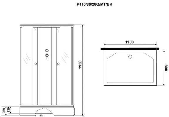 Душевая кабина Niagara Promo P110/80/26Q/MT/BK 110x80 без крыши, стекла матовые, профиль белый