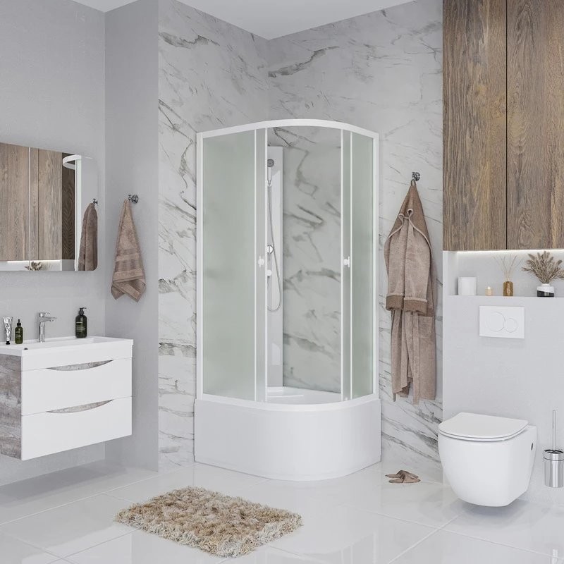 Душевые кабины изготавливаются из высококачественного АБС-пластика, а также закаленного стекла толщиной 4 мм. Профиль с порошковым покрытием придает конструкции долговечность.