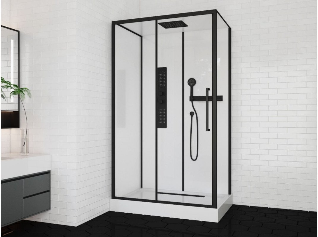 Душевая кабина Oda 8805 120x80 стекла прозрачные, профиль черный, профиль хром, общий размер (ДхШ): 120x80, низкий поддон, форма: прямоугольная, полка в комплекте