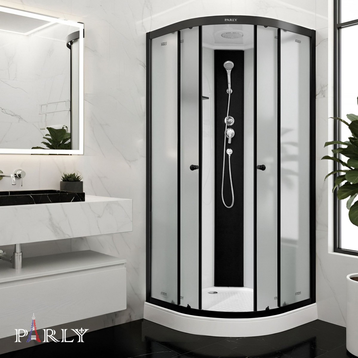 Душевая кабина Parly BETT B831 80x80 низкий поддон, стекла матовые, профиль черный, общий размер (ДхШ): 80x80, форма: четверть круга, полка в комплекте