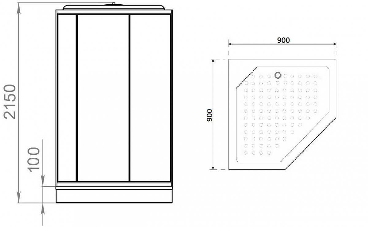 - Поддон: низкий 12 см, трапециевидный. Рельефное дно предупреждает падения.