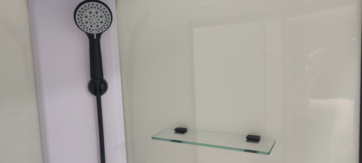 - Стенки из закаленного белого стекло (4 мм) просты в уходе и не требуют частой чистки.