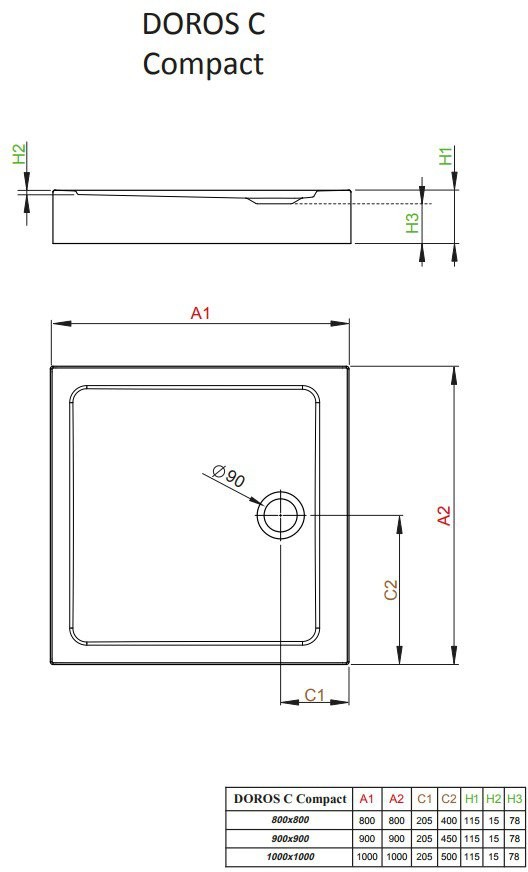 - Размер поддона (Д.;Ш.;В., см.): 90x90x11,5