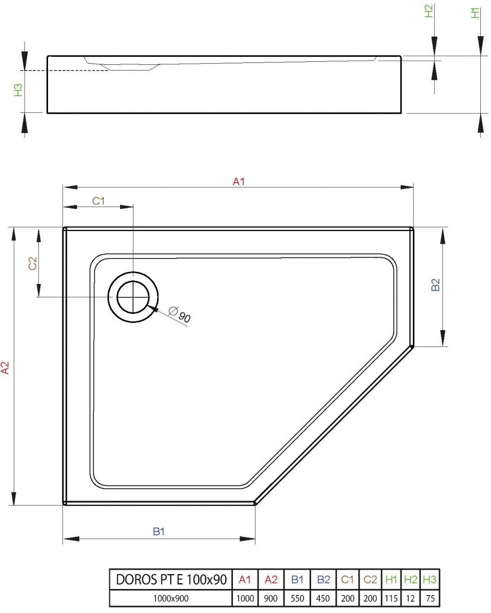 - Размер поддона (Д.;Ш.;В.): 100x90x11,5 см
