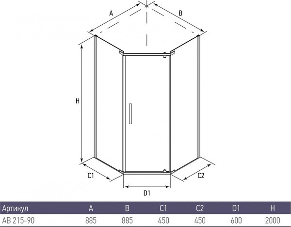 Душевой уголок Alex Baitler AB 215-90 + поддон AB9017V-1. Дополнительные элементы в комплекте: уплотнители