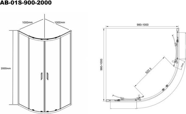 Душевой уголок Aquabath Atlas AB-01S-1000-2000 100x100 стекла прозрачные, профиль хром