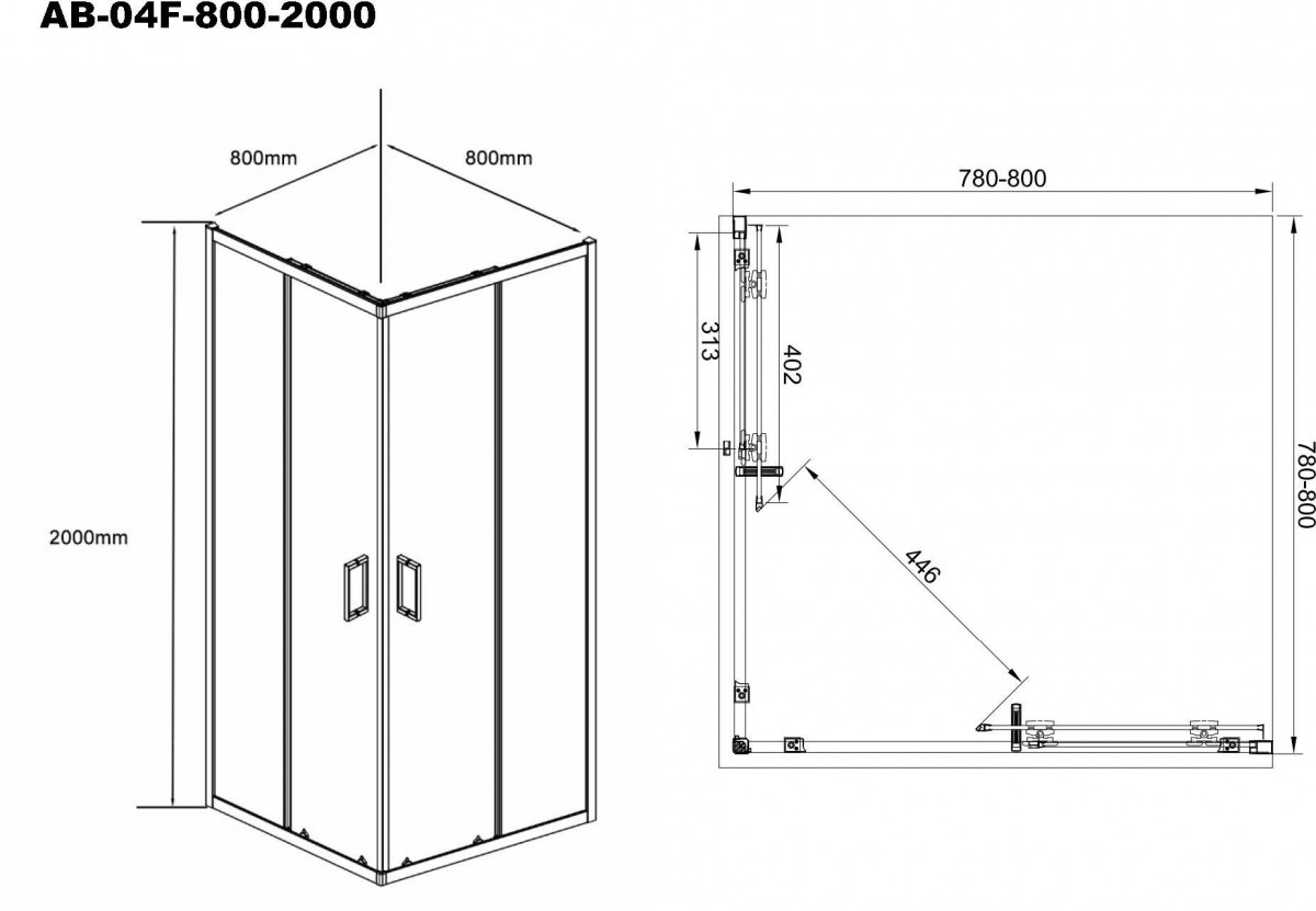 Душевой уголок Aquabath Atlas AB-04F-800-2000 80x80 стекла прозрачные, профиль хром