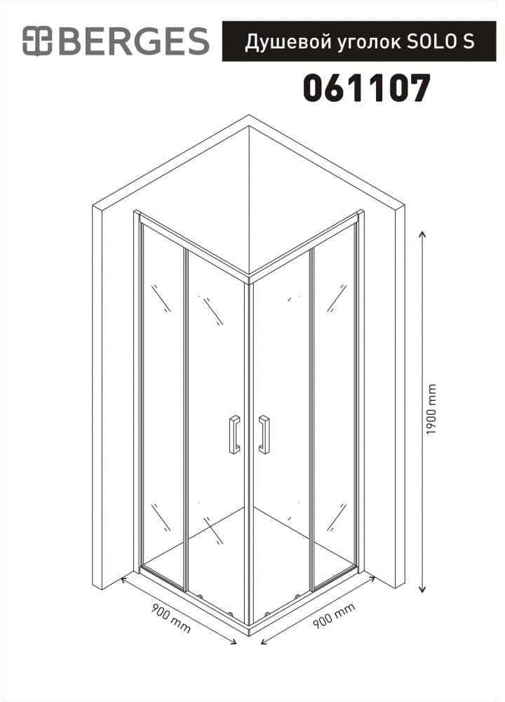 Душевой уголок Berges Solo S 90x90 стекла прозрачные, профиль хром - Размеры: 90x90 cм, Высота стекол: 190 см, Без поддона, Квадратная