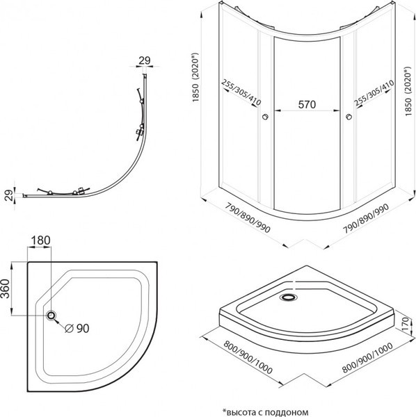 Душевой уголок Triton Альфа-Голд 90х90 (без поддона)