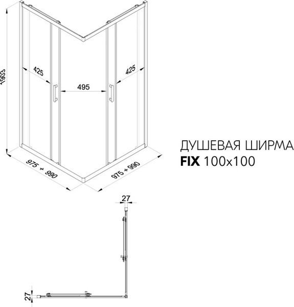 Душевой уголок Triton Фикс-Хром 100x100 (без поддона). Дополнительные элементы в комплекте: сборочный комплект, комплект направляющих
