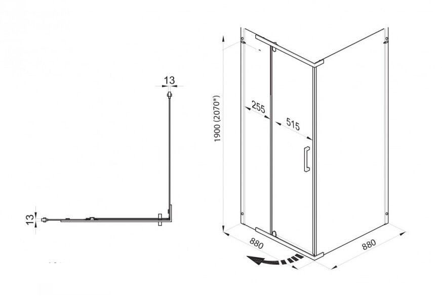 - Тип кабины - Квадратный душевой уголок для пристенного монтажа