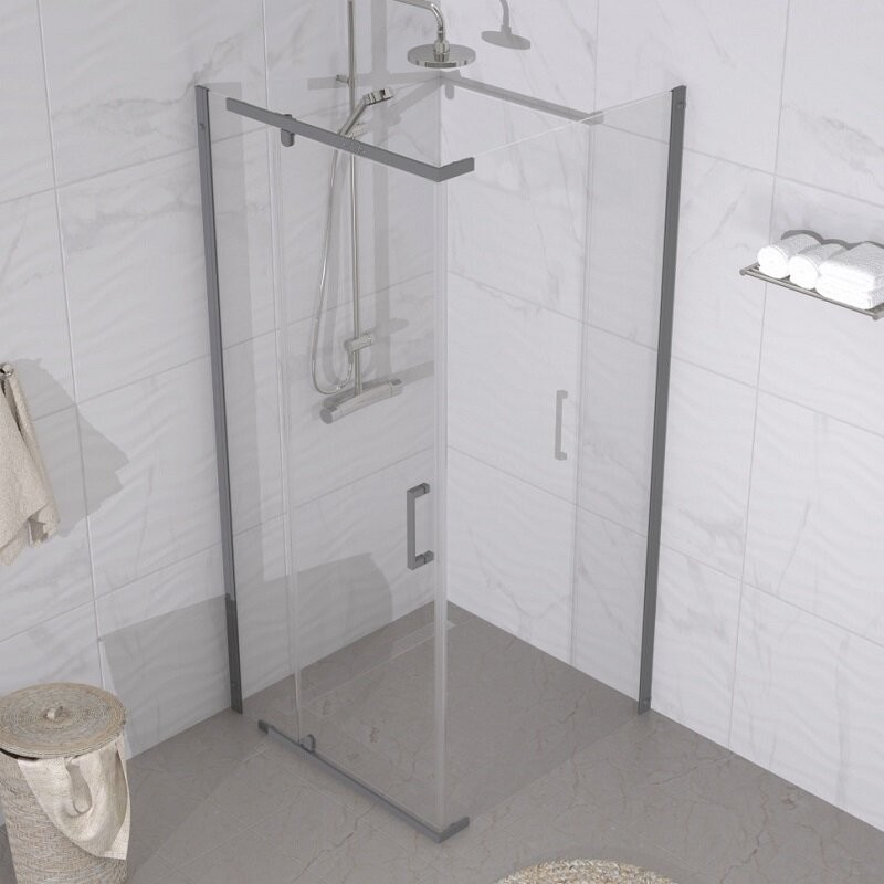 Душевой уголок Тритон Терра Графит А1 90x90 стекло прозрачное, профиль графит, без поддона, без крыши и задних стенок. Материал профиля алюминий.