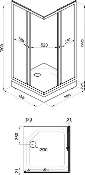 Душевой уголок Triton Вельвет-К 90х90 А. Дополнительные элементы в комплекте: сборочный комплект, комплект направляющих