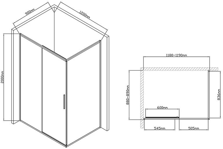 Тип кабины - Прямоугольный однодверный душевой уголок для пристенного монтажа