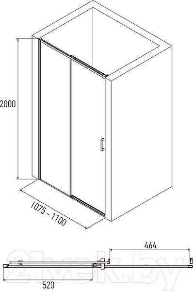 Душевая дверь Alex Baitler AB64B110. Дополнительные элементы в комплекте: ручка, уплотнители (силиконовые), замок магнитный, молдинг