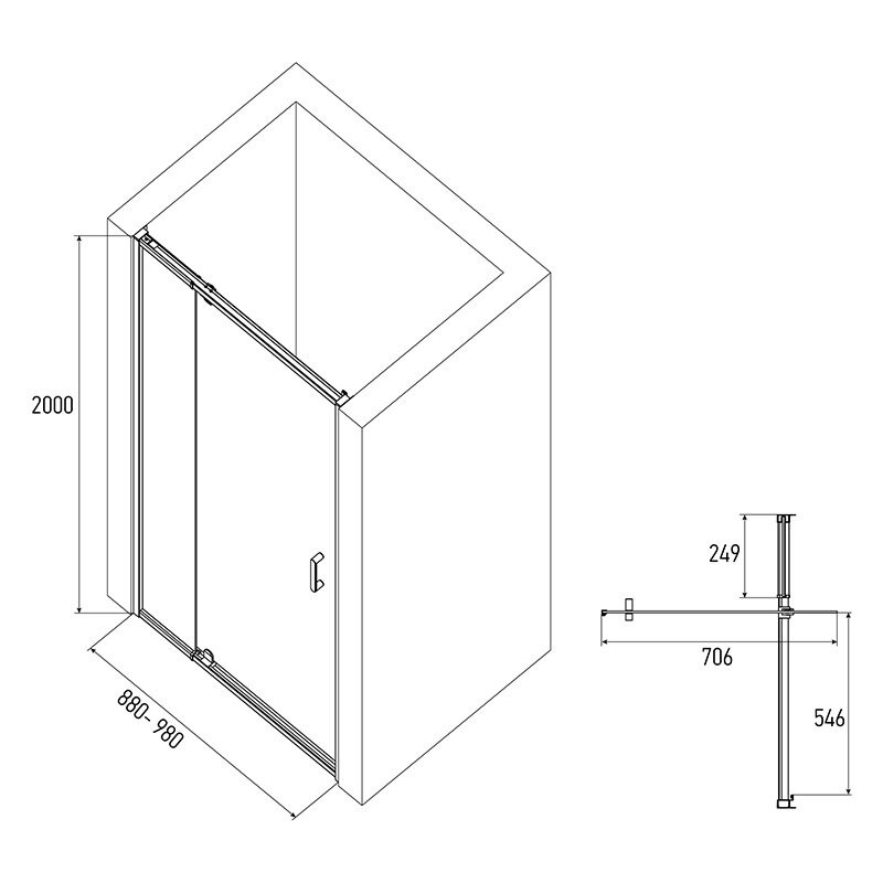 Душевая дверь Alex Baitler AB74B90. Дополнительные элементы в комплекте: ручка, уплотнители (силиконовые), замок магнитный, молдинг