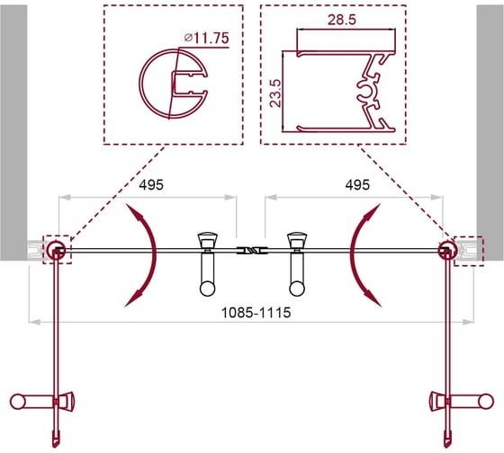 Возможная установка: на поддон, на пол.Регулировка ширины предусмотрена за счет боковых профилей.