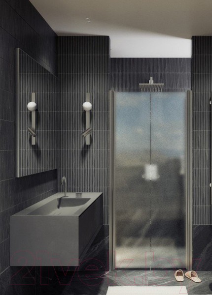 Стеклянная двустворчатая дверь на монопетлях — это стильный и современный элемент интерьера для ванной комнаты. Она изготовлена из прочного закаленного стекла, что обеспечивает ей долговечность и надежность. Монопетли позволяют створки плавно открываться и закрываться для удобства использования.