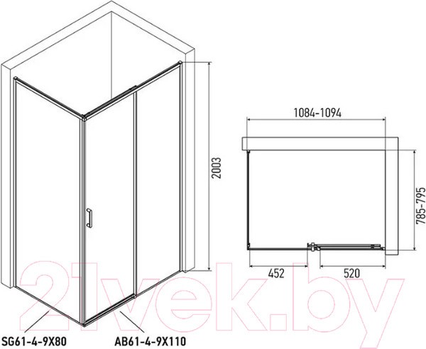 Душевая стенка Alex Baitler 80x200 / SG61C80