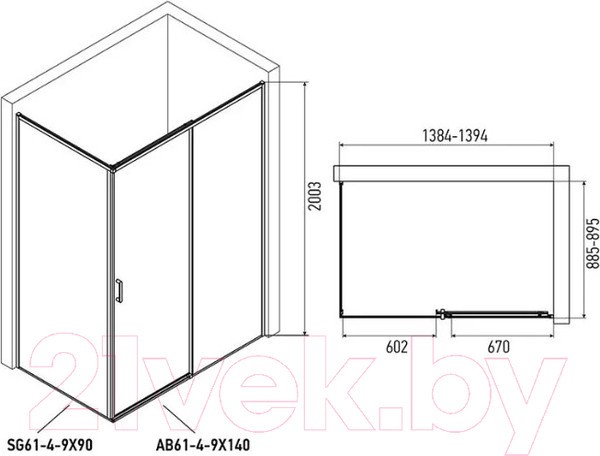 Душевая стенка Alex Baitler 90x200 / SG64B90