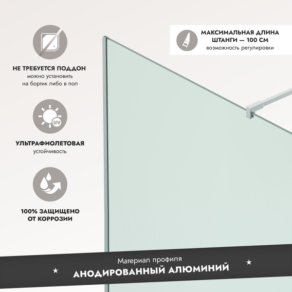 Душевая стенка Benetto BEN-602 SLM 100x200. Дополнительные элементы в комплекте: кронштейн, водоотталкивающее покрытие Easy Clean