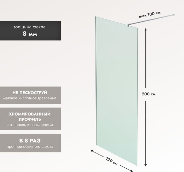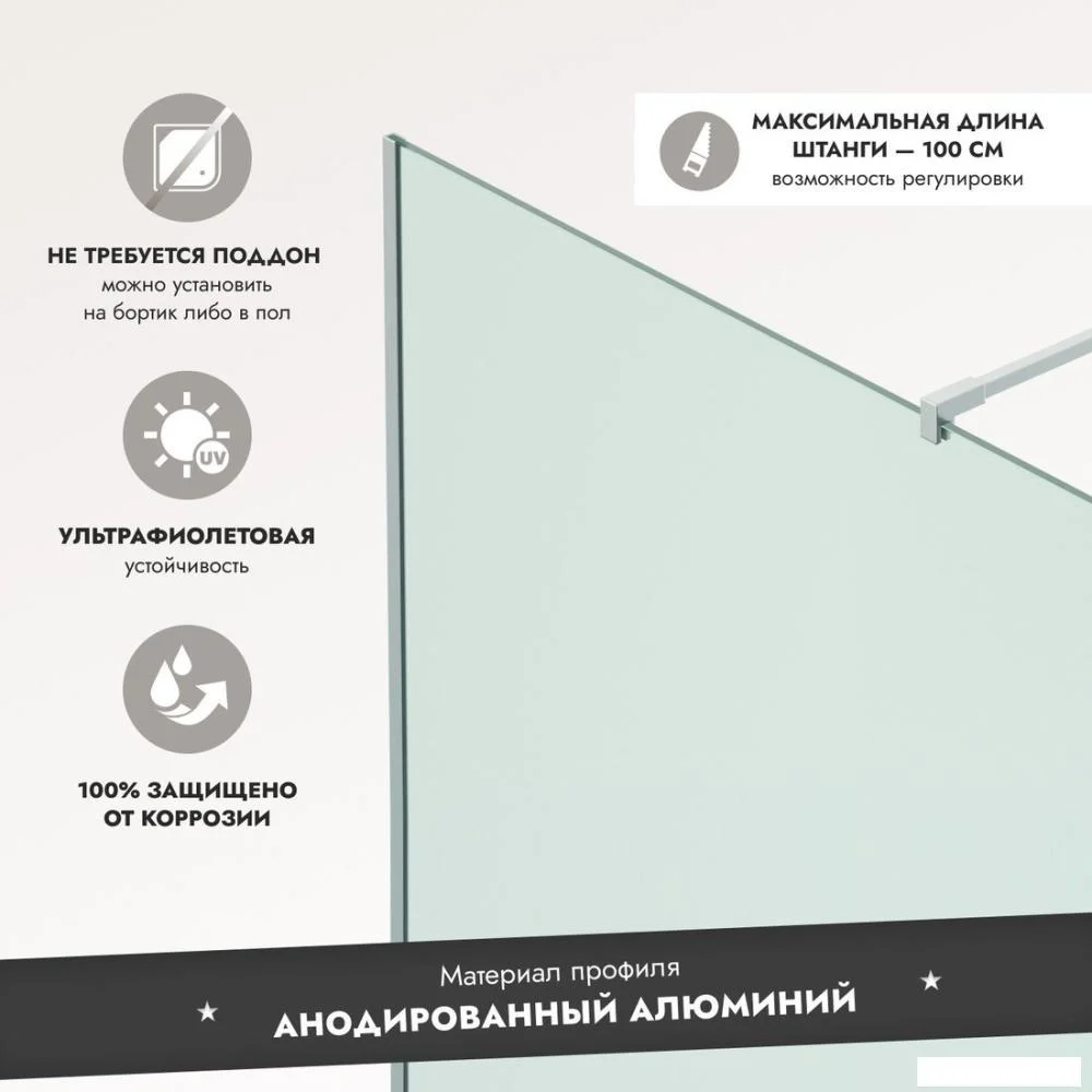 Душевая стенка Benetto BEN-602 SLM 120x200. Дополнительные элементы в комплекте: кронштейн, водоотталкивающее покрытие Easy Clean