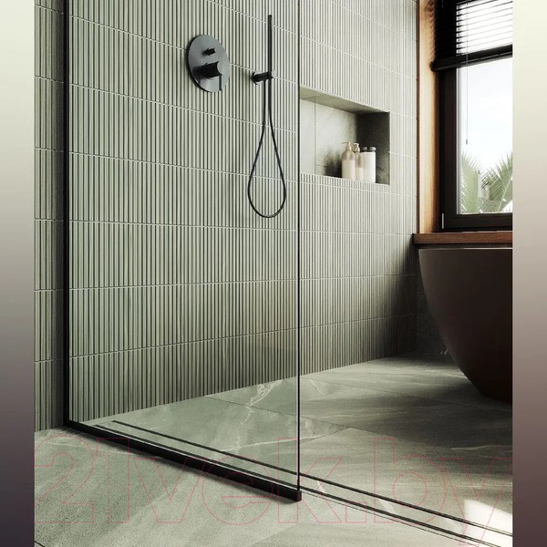 Душевая стенка MaybahGlass 195x89 / MGD-689-6у (прозрачное стекло/черный). Дополнительные элементы в комплекте: кронштейн, герметик