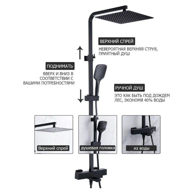 Настенная душевая система Gappo G2417-60 черный стойка со смесителем