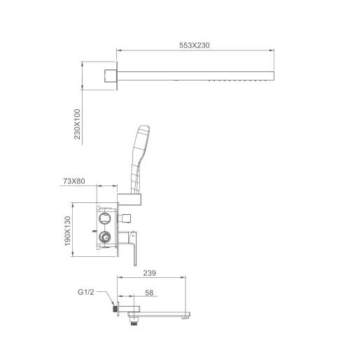 | Форма верхнего душа: | квадратная |
