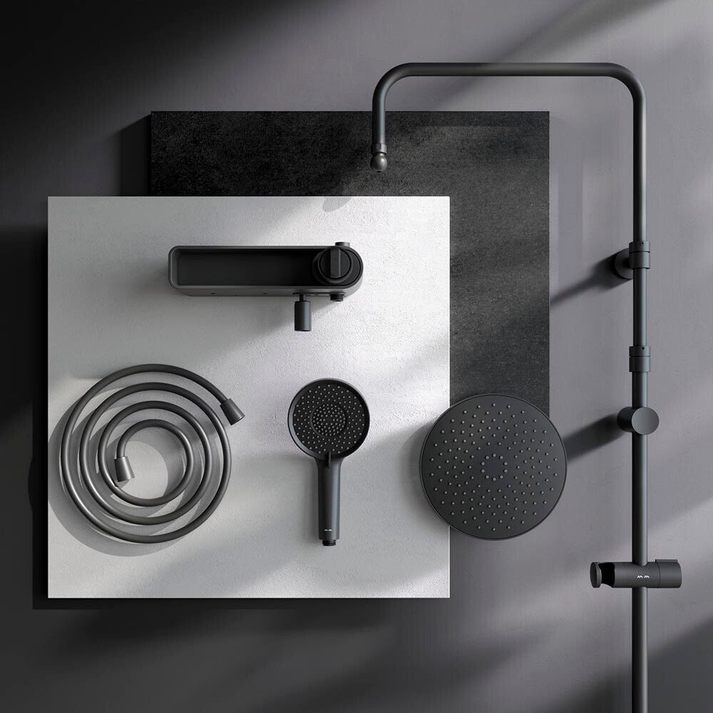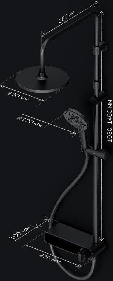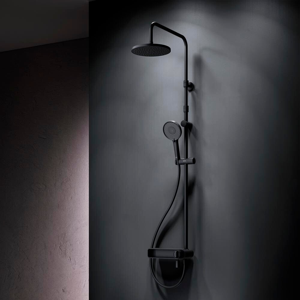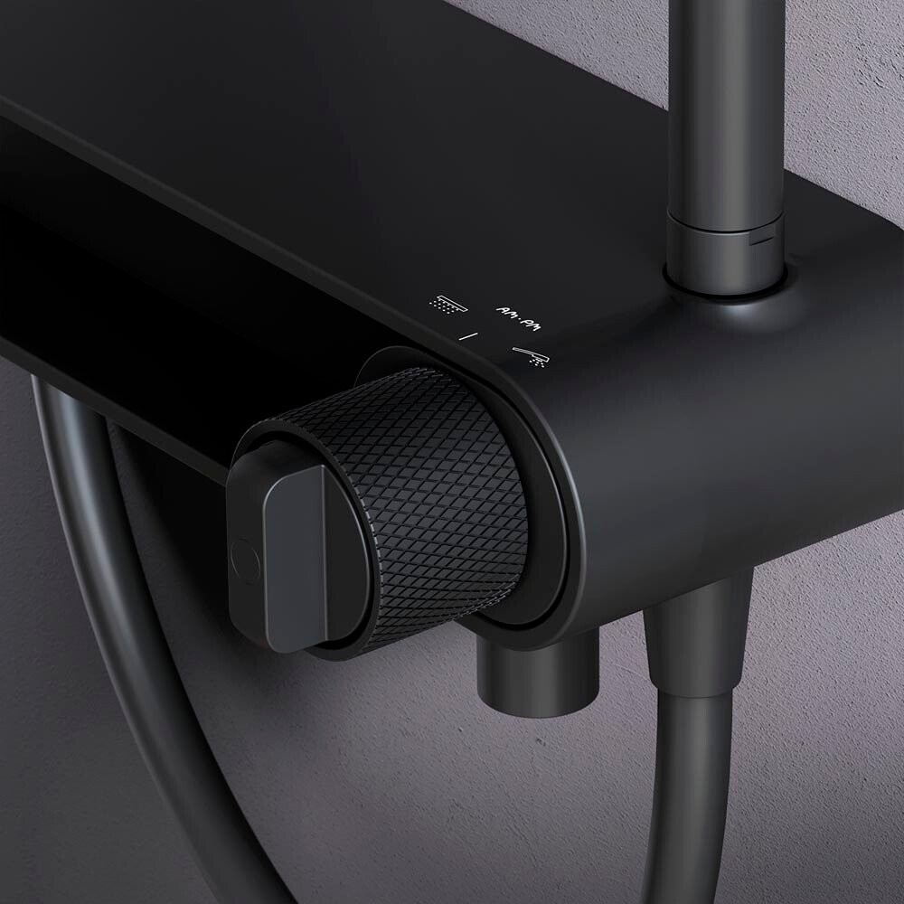 Душевая стойка AM.PM X-Joy F0785A722 в черном матовом цвете — трендовый минимализм для современных интерьеров ванных комнат. Конструкция регулируется по высоте и может подстроиться под любой рост. Трехрежимная душевая лейка. Шланг с защитой от перекручивания. Эта модель оснащена функцией очистки форсунок, что позволяет быстро и без дополнительных усилий очистить поверхность лейки. Для этого достаточно протереть поверхность мягкой салфеткой. Смеситель выполнен в виде компактной полки для косметических средств. Благодаря специальной технологии корпус смесителя не нагревается при использовании.