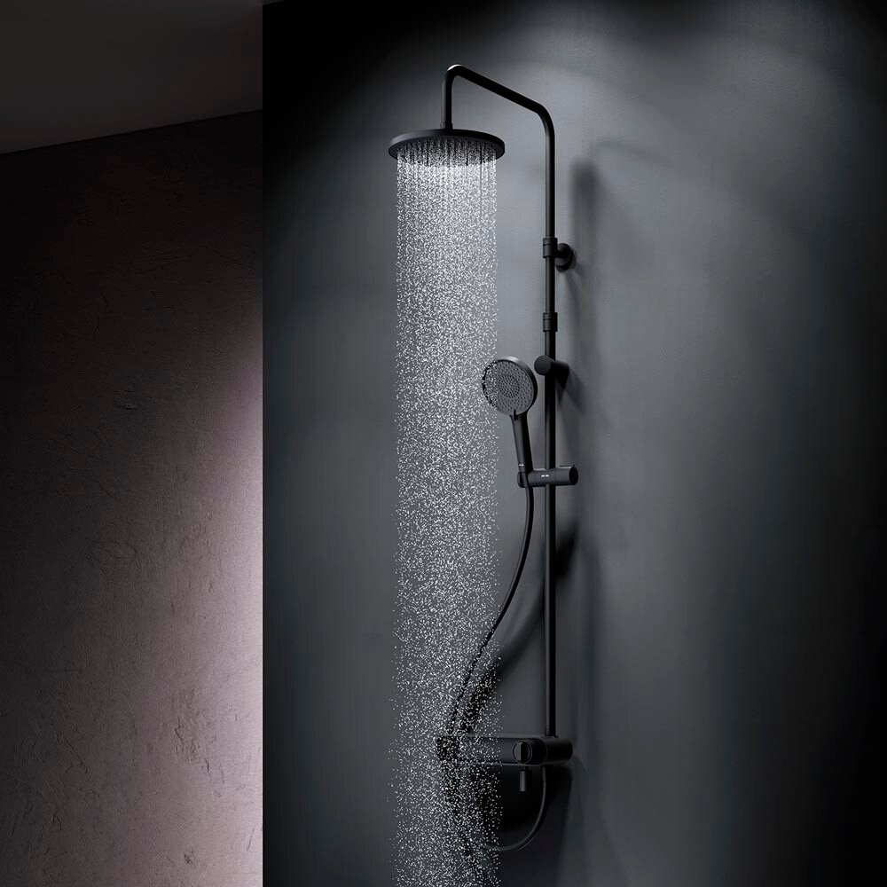 Душевая система со смесителем AM.PM X-Joy F0785A722 (черный), настенный монтаж, механический смеситель, верхний душ 220 мм, ручной душ 120 мм
