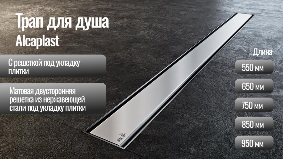 Трап для душа с двойной решеткой (цельнометаллическая + под плитку) 750 мм Alcaplast