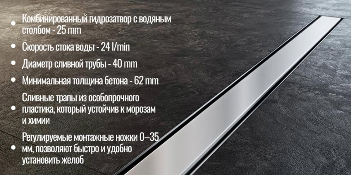 - Сливные трапы из прочного пластика, который устойчив к морозам и химии