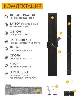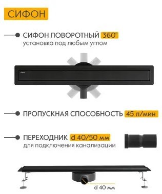 Душевой лоток Axus Universal 600 Black, Материал: Нержавеющая сталь, цвет: Черный, монтаж: В пол