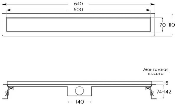 Душевой лоток Axus Universal 600 Gun Metal, Материал: Нержавеющая сталь, цвет: Оружейная сталь, монтаж: В пол