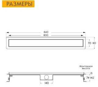 Душевой лоток Axus Universal 800 Black, Материал: Нержавеющая сталь, цвет: Черный, монтаж: В пол