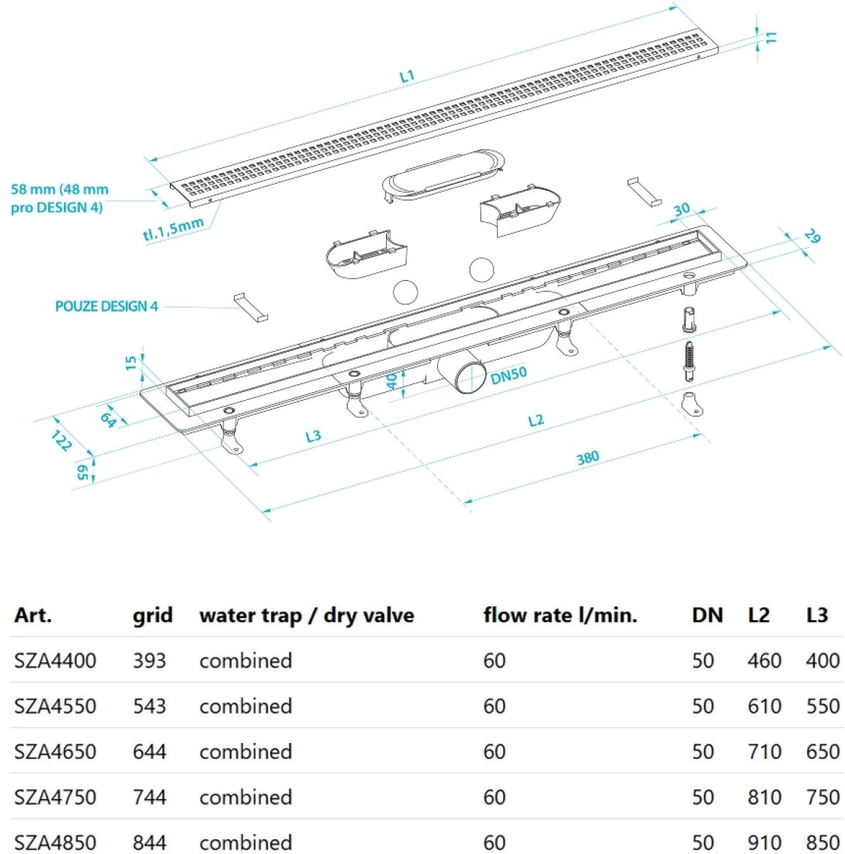Душевой лоток PlastBrno Design 4 SZH4550 хром, Материал: Нержавеющая сталь, цвет: Хром, монтаж: В пол