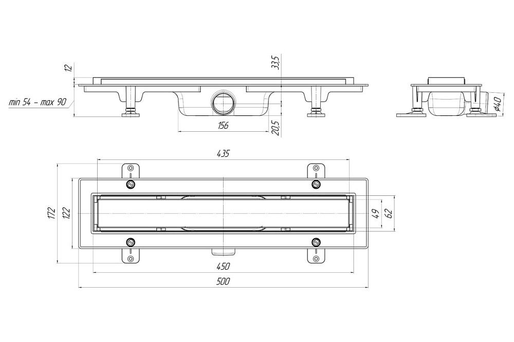 Душевой лоток с решеткой АНИПласт TLQ1045 DN40 с сухим затвором и матовой решёткой под плитку МОЛ 450х62 мм