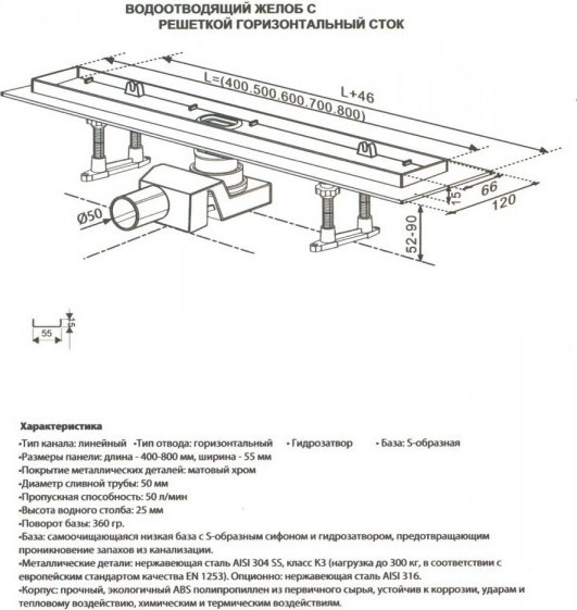 | Пропускная способность слива л/мин: | 50 |